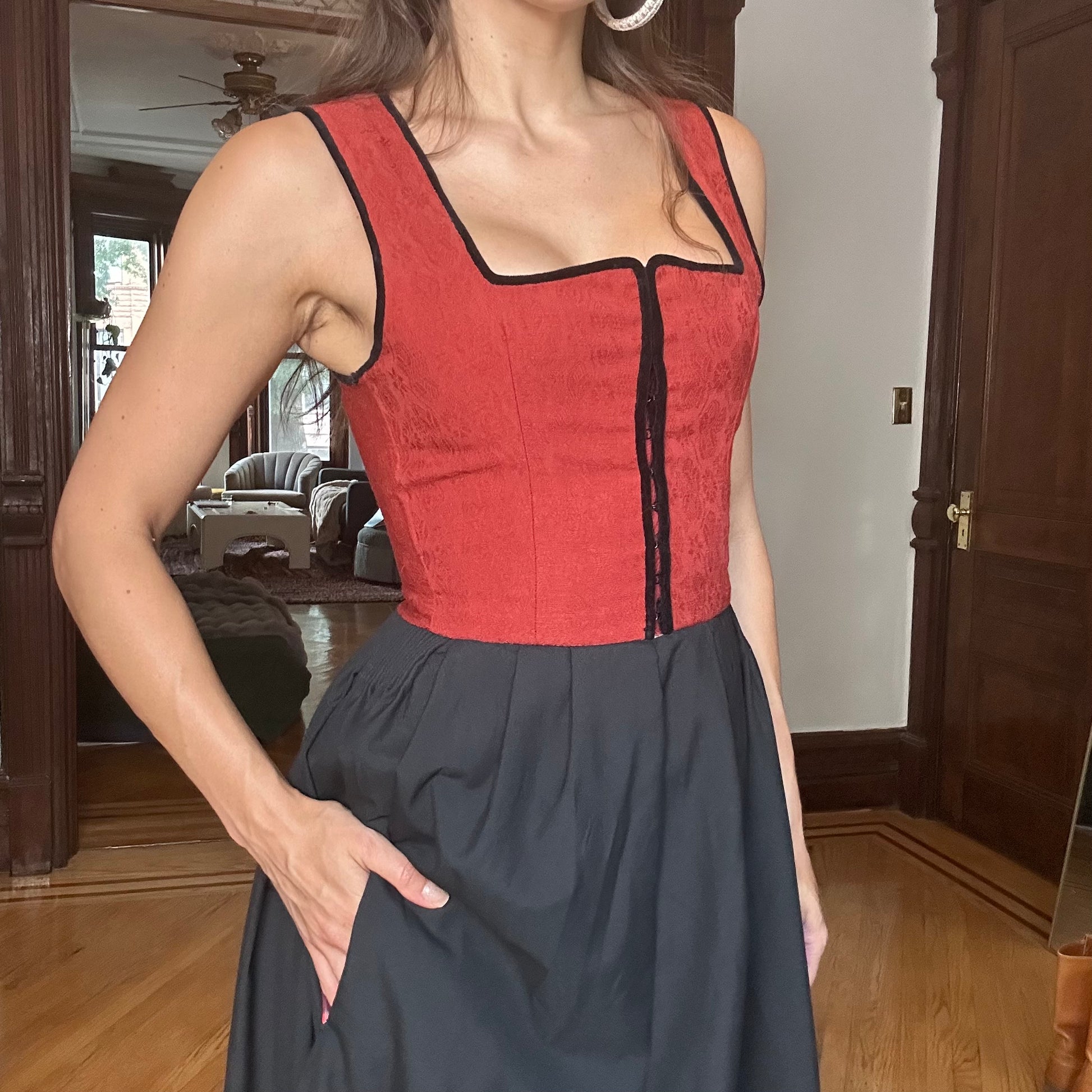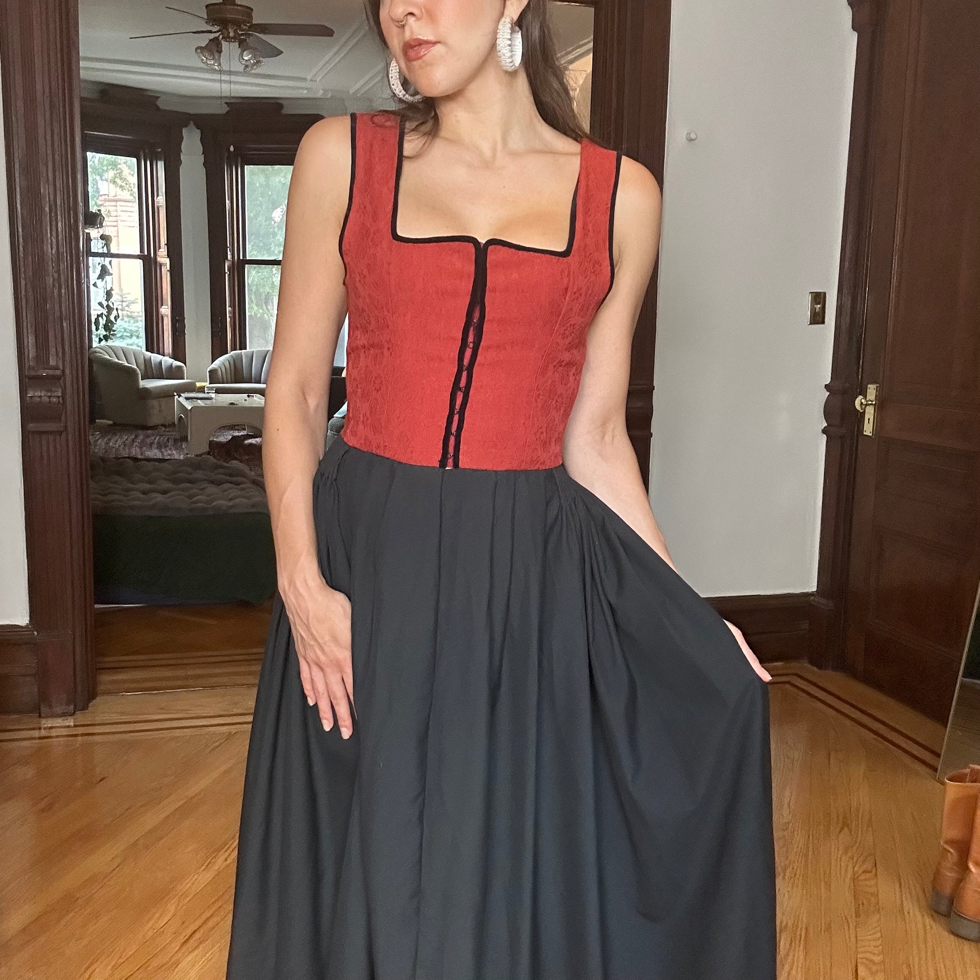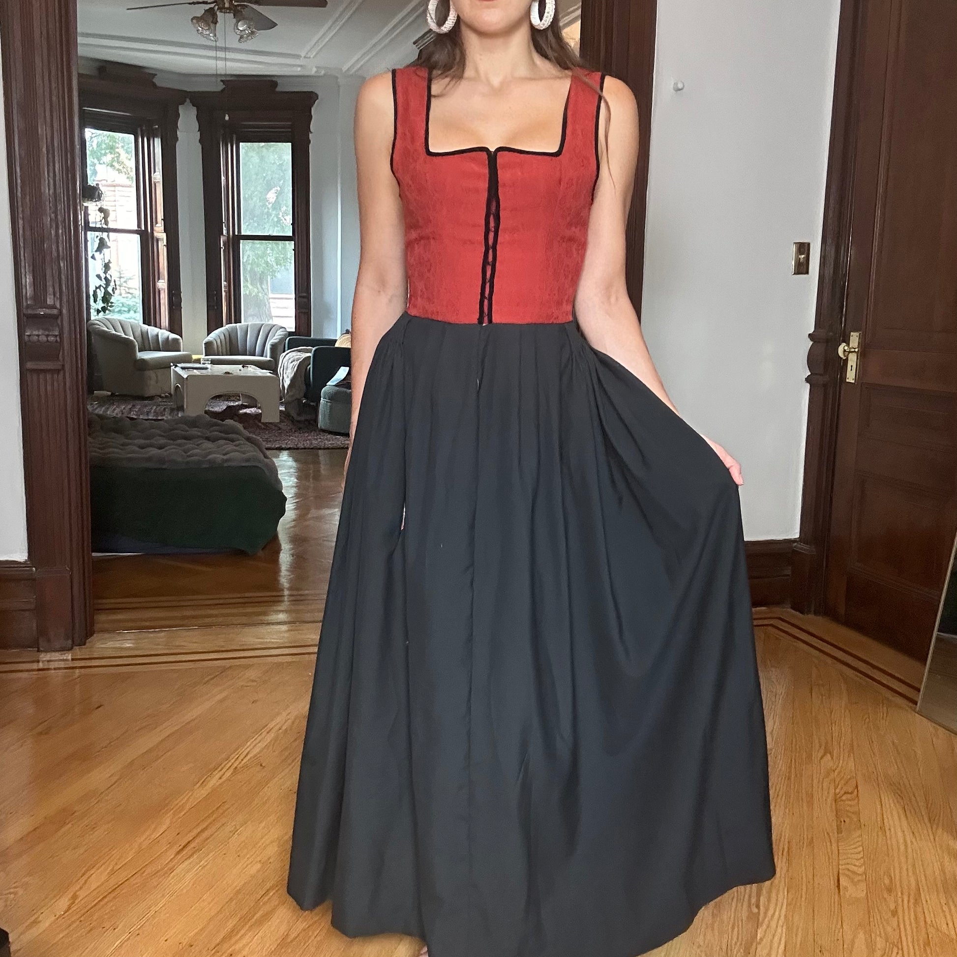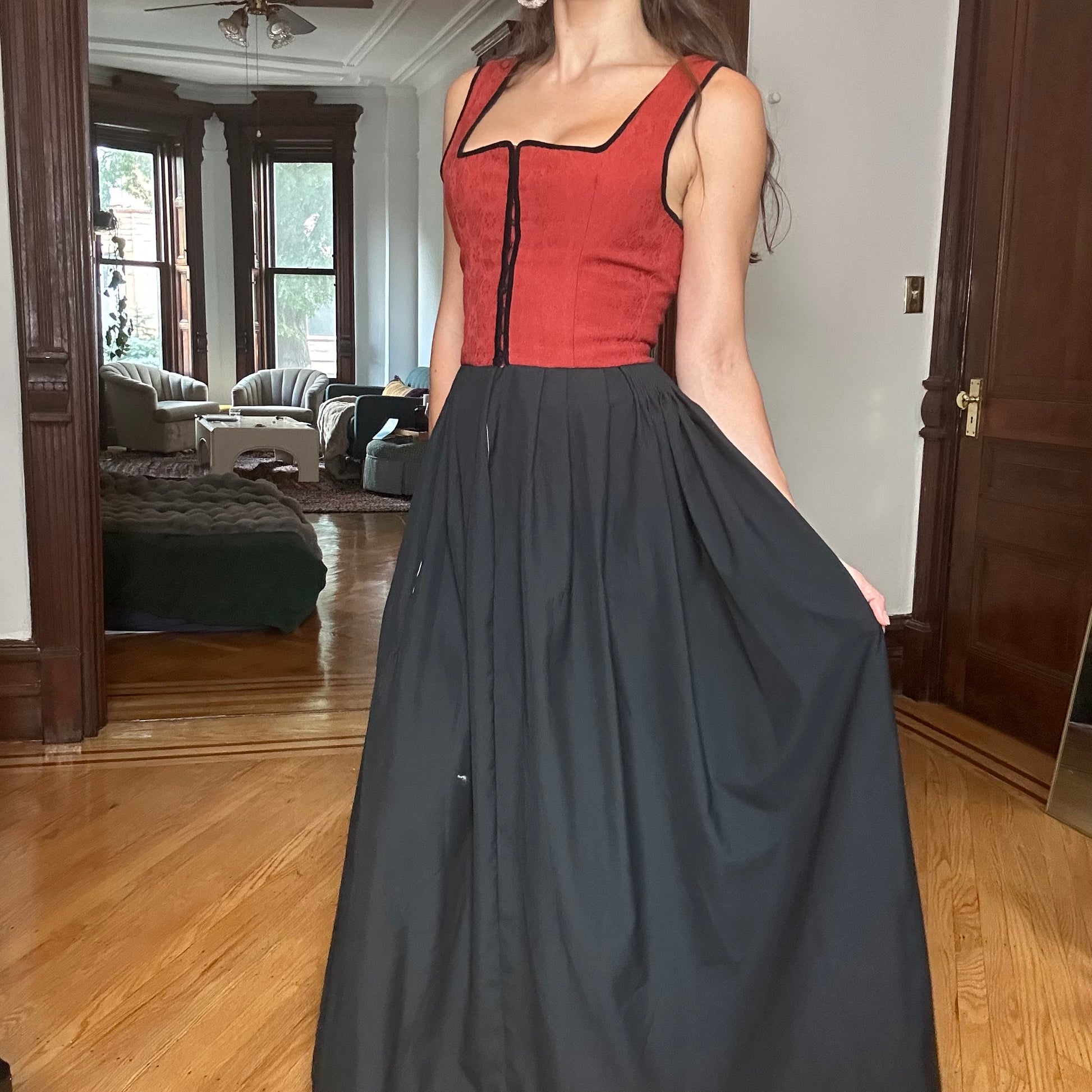 Some tears to corset fabric; this dress is handmade with wide stitching but is otherwise in excellent condition.