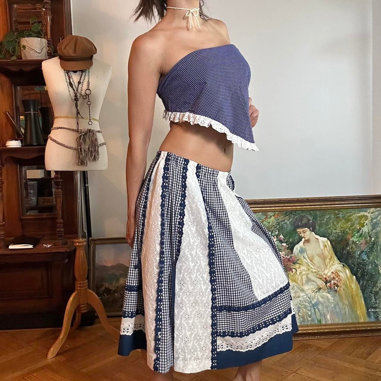 Gingham, lace & polka dots set